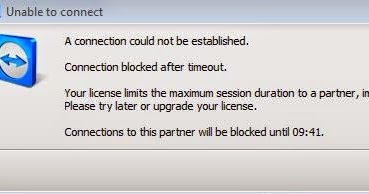 Teamviewer Connection Blocked After Timeout. I encountered the below error "Connection Blocked After Timeout" many times when I used Teamviewer and I got super frustrated. My teamviewer sessions cut out after a couple of minutes, I am on the free licence and use it to assist friends (the ones that don't pay).