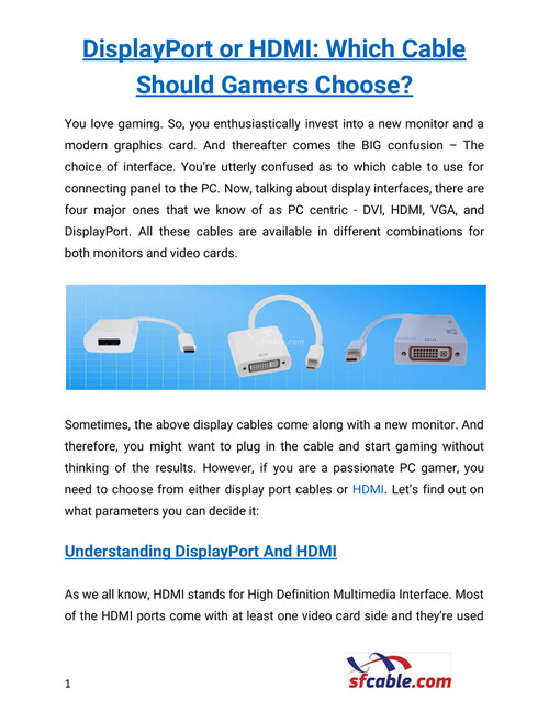 displayport cable vs hdmi gaming - Tous Les Câbles Televoyage